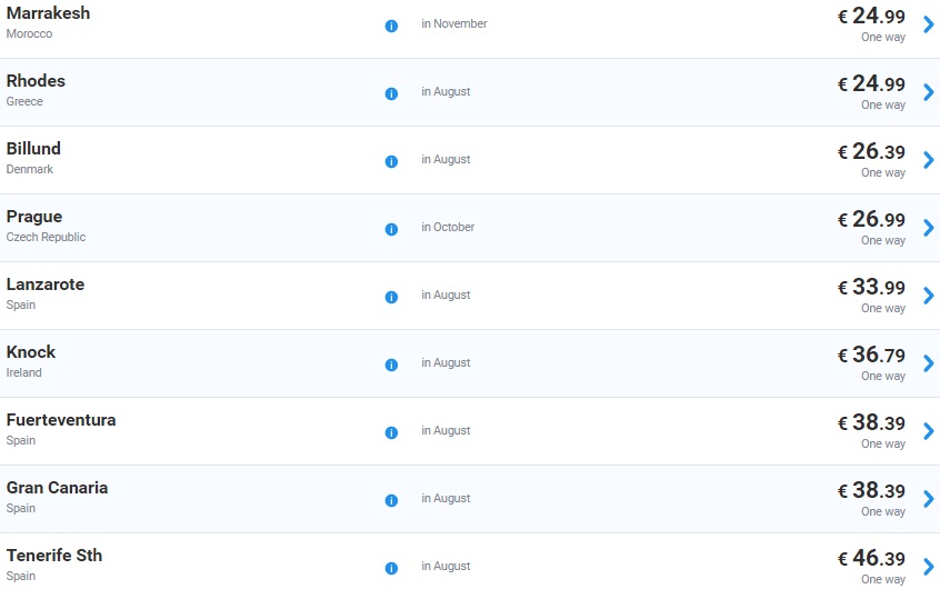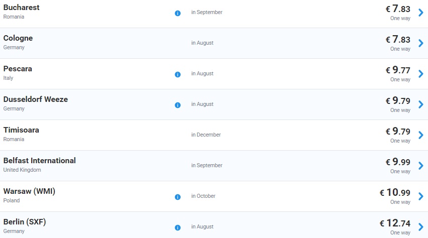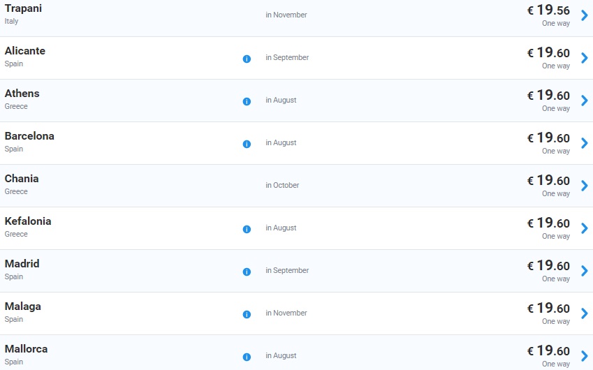 Super akcija -20% irskega letalskega prevoznika Ryanair za številne destinacije po Evropi iz bližnjih letališč. Tako lahko kupite enosmerno vozovnico že za 8 €, povratno pa že za pičlih 16 €! V ceno je vključena ročna prtljaga. Torej kako se sliši, da greste iz bližnjih v Belgijo, Francijo, Nemčijo, Irsko, Španijo, Anglijo, Nizozemsko, Litvo, Romunijo, Poljsko, Dansko, Italijo (Sardinija, Sicilija) že za cca 10-20 €? Poskušaj organizirati, da se na pot odpravite 4, kajti prišparali boste kar nekaj € za transfer do letališča, če greste v lastni režiji. Vse letalske vozovnice rezervirajte na spletni strani www.ryanair.com. Čas potovanja je od septembra do novembra! Let’s travel people.