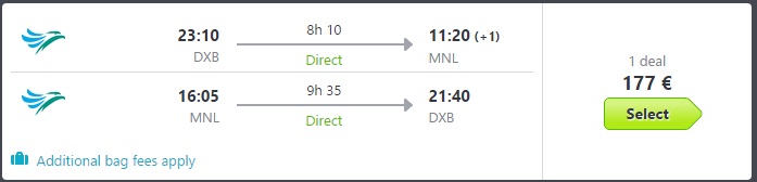 DUBAJ – MANILA – DUBAJ 177 € 8.11 – 30.11