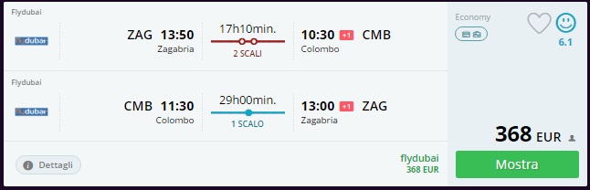 ZAGREB – COLOMBO – ZAGREB (www.momondo.it)