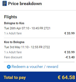 BOLOGNA – KOS – BOLOGNA (www.ryanair.com) – ročna prtljaga