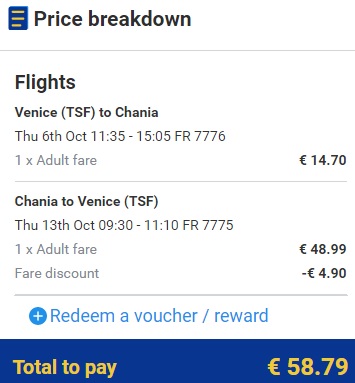 TREVISO – CHANIA – TREVISO (www.ryanar.com) – ročna prtljaga