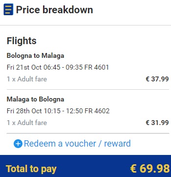 BOLOGNA – MALAGA – BOLOGNA www.ryanair.com (ročna prtljaga)