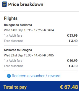 BOLOGNA – PALMA DE MALLORCA – BOLOGNA www.ryanair.com (mala ročna prtljaga)