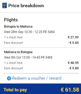 BOLOGNA – PALMA MALLORCA – BOLOGNA www.ryanair.com (mala ročna prtljaga)