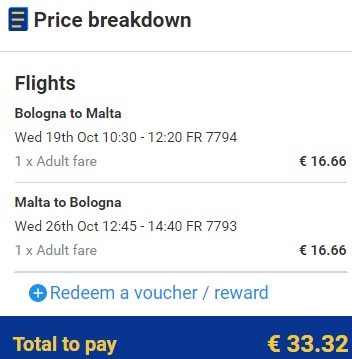 BOLOGNA – MALTA – BOLOGNA (www.ryanair.com) – ročna prtljaga