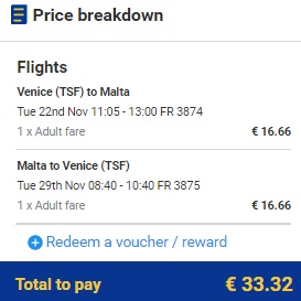 TREVISO – MALTA – TREVISO (www.ryanair.com) – ročna prtljaga