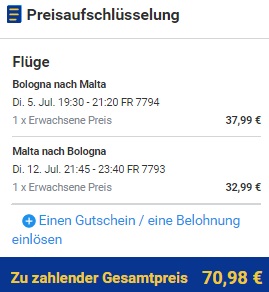 BOLOGNA – MALTA – BOLOGNA     (www.ryanair.com) – ročna prtljaga