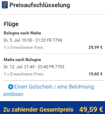 BOLOGNA – MALTA – BOLOGNA (www.ryanair.com) – ročna prtljaga