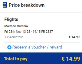 TREVISO – MALTA – CATANIA – TRST (www.ryanair.com), ročna prtljaga