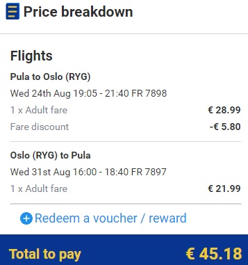 PULA – OSLO (RYGGE) – PULA   www.ryanair.com (ročna prtljaga)