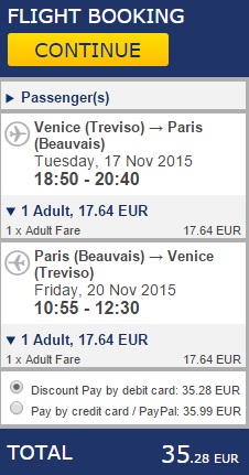 TREVISO – PARIZ (BEAUVAIS) – TREVISO (www.ryanair.com) – ročna prtljaga