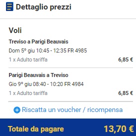 TREVISO – PARIZ – TREVISO (www.ryanair.com) – ročna prtljaga