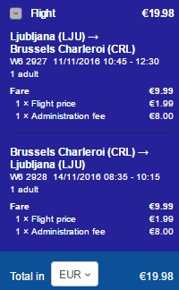 LJUBLJANA – CHARLEROI – LJUBLJANA www.wizzair.com (mala ročna prtljaga)