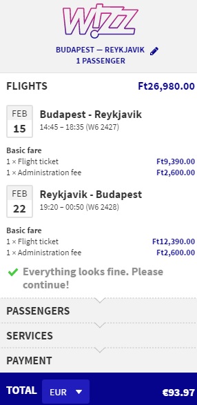 BUDIMPEŠTA – KEFLAVIK – BUDIMPEŠTA Rezervacija (www.wizzair.com)