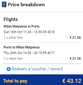 MILANO – PORTO – MILANO www.ryanair.com (ročna prtljaga)