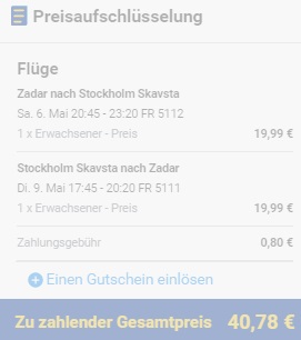 ZADAR – STOCKHOLM – ZADAR (www.ryanair.com) – ročna prtljaga