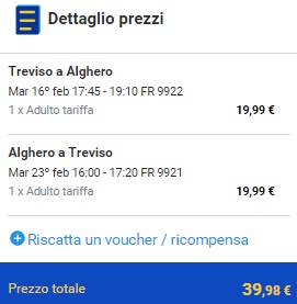 TREVISO – ALGHERO – TREVISO      (www.ryanair.com) – ročna prtljaga