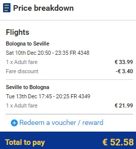 V decembru imate odlično priložnost za ogled in raziskovanje glavnega mesta Andaluzije, Sevilje. To čudovito mesto in pokrajino lahko sredi poletja obiščete že za 52 €. Na voljo je kar nekaj terminov. Letalski prevoznik je Ryanair. Kot primer smo vzeli datum 10. – 13. december 2016. Za 2 letalski vozovnici in hotel za 2 osebi (3x nočitev) boste odšteli 164 € ali 82 € na osebo. Mesto odhoda je Bologna.