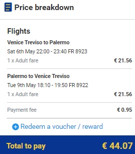 TREVISO – PALERMO – TREVISO (www.ryanair.com) – ročna prtljaga
