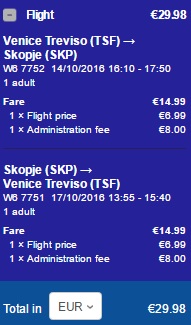TREVISO – SKOPJE – TREVISO (www.wizzair.com) – mala ročna prtljaga