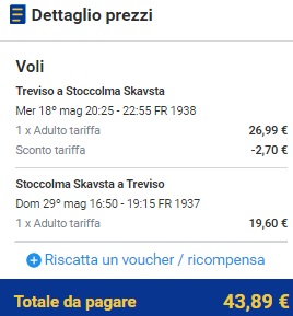 TREVISO – STOCKHOLM – TREVISO (www.ryanair.com) – ročna prtljaga