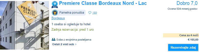 Privoščite si izlet v jugozadno Francijo. Bordeaux, pristaniško in administrativno glavno mesto francoske regije Akvitanije, je mesto na seznamu Unescove kulturne dediščine in slovi po bogati arhitekturi ter ima takoj za Parizom največje število zaščitenih zgradb. Pokrajina Akvitanija ponuja neskončne možnosti raziskovanja, od jame Pair-non-Pair, v kateri so bili najdeni ostanki neandertalcev iz obdobja pred 30,000 do 90,000 leti. . V tej vinorodni pokrajini, so nekatere največje vinske kleti na svetu in na to se nanaša tudi lokalna kulinarika, ki jo ponuja mesto samo. 5 dnevni izlet (povratna letalska vozovnica + 4 nočitve) je sedaj na voljo že za 120 €/osebo, če potujejo 4 osebe. Na voljo je več terminov, za vas pa smo izbrali 30.3 – 4.4.2015. Odhod in prihod je letališče v Bologni.