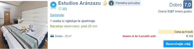V mesecu maju se vam ponuja odlična priložnost za let v Santander ter ogled in raziskovanje severa Španije. Santander se nahaja v severni španski pokrajini Kantabriji, ki leži med Baskijo ter Asturijo, kjer se razprostira čudovita pokrajina in očarljiva mesta. Irski nizkocenovnik Ryanair vam ponuja povratne lete v Santander že za 39 €. Na voljo je več terminov, za vas pa smo ga izbrali od 12.-16. maja. Povratna letalska vozovnica ter 4 nočitve pa vas bodo prišle le 95€/osebo, če potujeta 2 osebi. Odhod in prihod je letališče Bergamo pri Milanu.