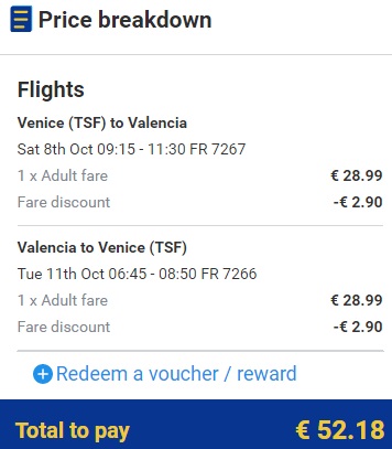 V začetku oktobra se vam ponuja idealna priložnost za ogled čudovitega obmorskega mesta, Valencije. To čudovito obmorsko mesto navdihuje z arhitekturo, prijetnim podnebjem in kvalitetnim nočnim življenjem. Tja se lahko iz Trevisa odpravite že za 52 €!. Če dodamo k temu še hotel (4 nočitve) pridemo do cene 93 €/osebo v primeru, da potujeta 2 osebi. Letalski prevoznik je irski Ryanair.. Transfer do letališča v Trevisa lahko naredite z Gooptijem. Kot namig vam mogoče priporočamo ogled nogometne, košarkaške ali rokometne tekme.