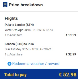 PULA – LONDON – PULA (www.ryanair.com) – ročna prtljaga
