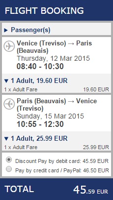 TREVISO – PARIZ (BEAUVAIS) – TREVISO (www.ryanair.com) – ročna prtljaga