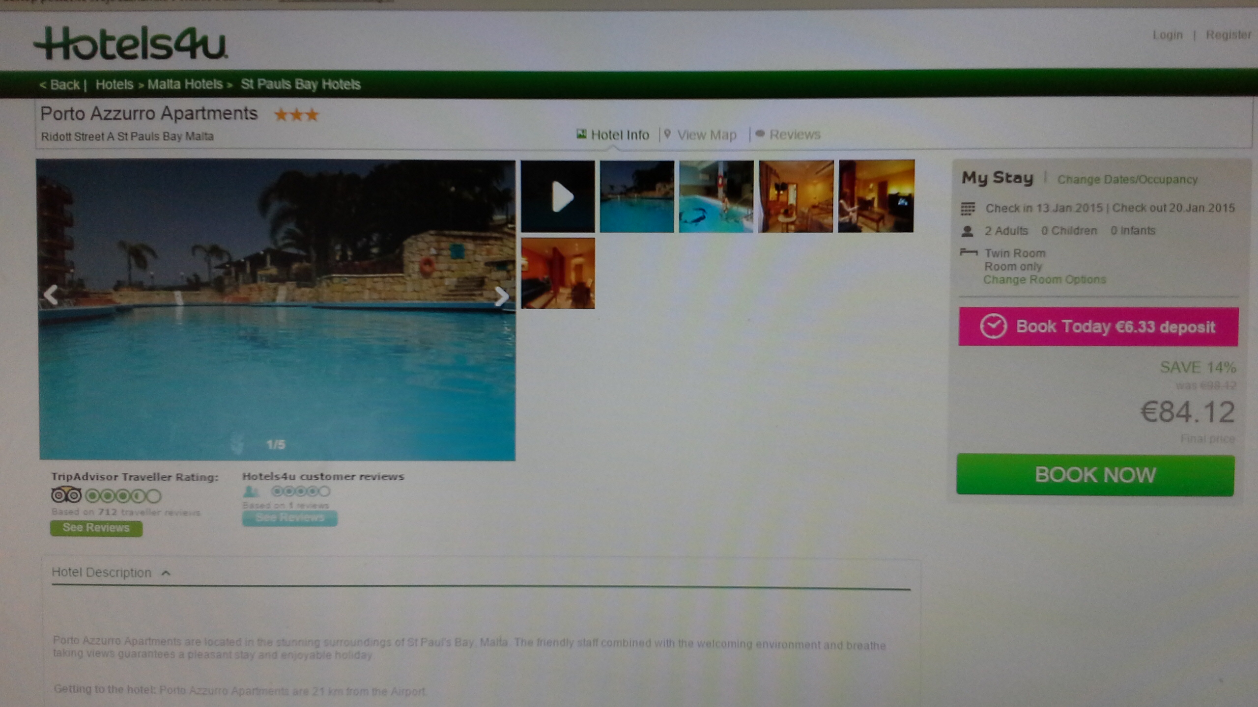Malta je pogosto imenovan kot otok sonca, zahvaljujoč imenitnemu vremenu in podnebju, ki je tipično mediteransko. Počitnice na Malti so za vsakogar, ne glede na starost in kaj vas zanima. To je odlična destinacija za družinske počitnice in romantičen oddih. Kot primer smo vzeli termin med 13 – 20 januarjem v katerega je vključen povratni letalski prevoz in hotel. Cena 72 €/osebo! Za transfer do letališča preveri www.goopti.com. Odhod je iz Trevisa. Akcija velja samo danes 4.11.2014.