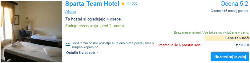 Primer 2 posteljne sobe (21. – 26. maj) 109,5 €: www.booking.com