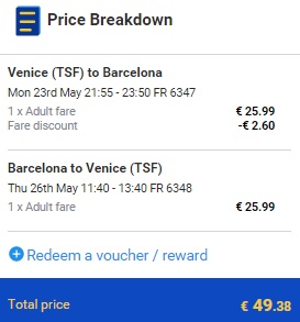 TREVISO – BARCELONA – TREVISO (www.ryanair.com) – ročna prtljaga