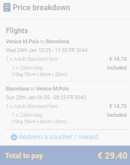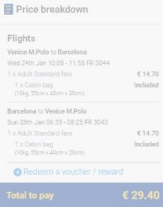 BENETKE – BARCELONA – BENETKE (www.ryanair.com) – ročna prtljaga