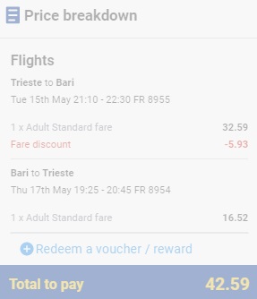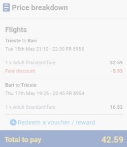 TRST – BARI – TRST      www.ryanair.com – ročna prtljaga