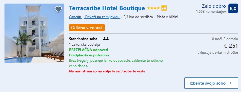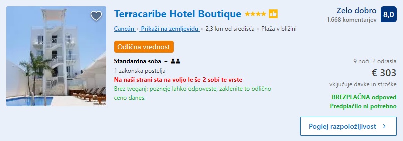 Prenočišče z zajtrkom (28.4 – 5.5. 2020) Hotels in White Sand Lodge (7 nočitev) www.hotelscombined.si 217 € za 2 osebi