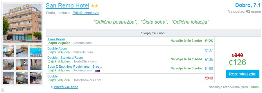 Hotel rezervirajte na spletni strani www.hotelscombined.com. Dvoposteljna soba za 7 nočitev z zajtrkom že za 126 €.