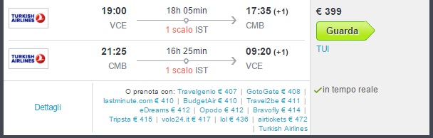 VENICE – COLOMBO – VENICE (www.skyscanner.it) – 20 kg oddane prtljage