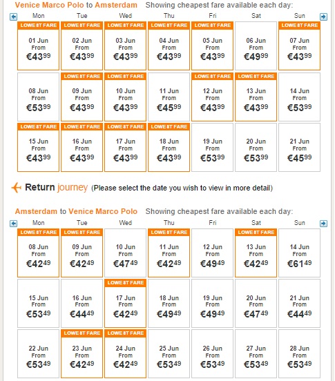 Dobra novica! Z 8. 5. 2015 bo britanski nizkocenovnik Easyjet odprl novo linijo na relaciji Benetke – Amsterdam. Na omenjeni relaciji bodo opraljali 5 letov tedensko in sicer ob torkih, sredah, četrtkih, sobotah in nedeljah. Leti so na voljo do 6. septembra 2015. Karte že lahko kupite na spletni strani www.easyjet.com. Za najcenejšo povratno vozovnico boste odšteli 86,50 €. Gremo v Amsterdam!