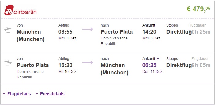 Dominikanska republika je demokratična država, ki se nahaja na vzhodnem delu karibskega otoka Hispaniola. Ta destinacija je s svojimi čudovitimi plažami, morjem in ljudmi zagotovo ena najbolj zaželenih destinacij na Karibih. Tja se lahko odpravite iz Munchena. Kot primer smo zapisali termin 3.12 – 10.12. 2014 že za 749 € na osebo. V ceno je všteta povratna letalska vozovnica in hotel 5 zvezdic z All Inclusive ponudbo. Cena: neverjetnih 1373 € ali 686 € na osebo! Letalski prevoznik je AirBerlin. Na voljo 3 termini v mesecu decembru.