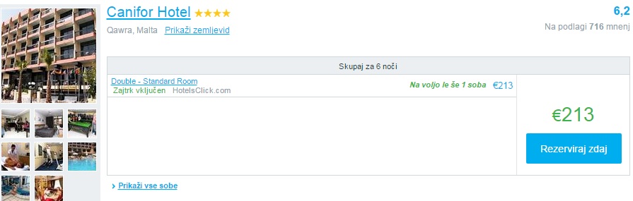 Hotel**** z zajtrkom, (1.-7. julij) 213 € rezervacija: www.hotelscombined.com