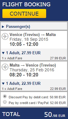 TREVISO – MALTA – TREVISO (www.ryanair.com) – ročna prtljaga