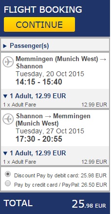MEMMINGEN – SHANNON – MEMMINGEN (www.ryanair.com) – ročna prtljaga