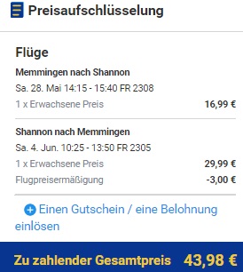 MEMMINGEN – SHANNON – MEMMINGEN (www.ryanair.com) – ročna prtljaga