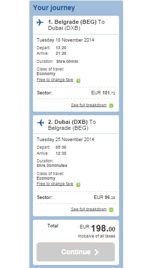 Želite zelo poceni v mesto prestiža, dobrih avtomobilov in neverjetne infrastrukture? Imamo super ponudbo za vas. Čas potovanja je od oktobra do decembra, povratno letalsko vozovnico pa lahko kupite za super ugodnih 198 €. Let je iz Beograda z letalsko družbo Flydubai. Ne oklevajte in rezervirajte, akcija se konča 25. septembra.