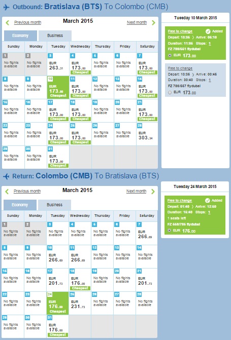 BRATISLAVA – COLOMBO – BRATISLAVA (www.flydubai.com) – 20 kg oddane prtljage