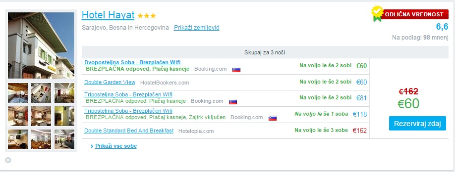 Hotel Hayat za 2 osebi rezerviraj preko www.booking.com (60 € – 3 nočitve)