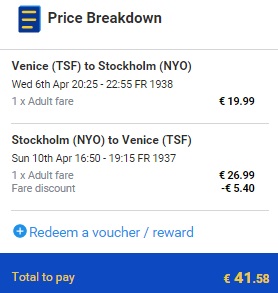 TREVISO – STOCKHOLM – TREVISO (www.ryanair.com) – ročna prtljaga