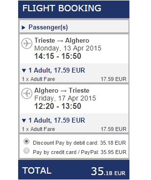 TRST – ALGHERO – TRST (www.ryanair.com) – ročna prtljaga