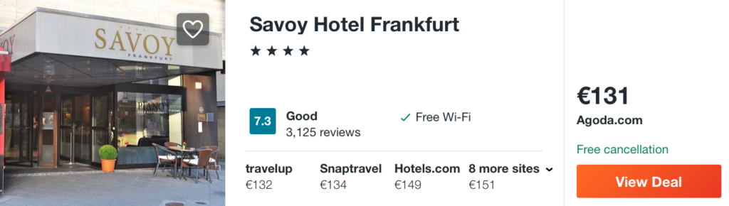 Prenočišče: 3 nocitve v Frankfurtu 131 € (dvoposteljna soba) 26.11 – 29.11